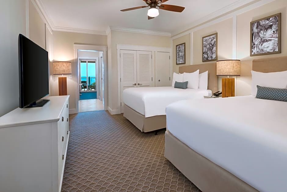 Jekyll Ocean Club is the only all-suite boutique hotel on Jekyll Island. The oversized, oceanside queen suite features two queen beds, living room with sleeper sofa, a patio overlooking beachfront and the Atlantic beyond, an ADA compliant bathroom, and plenty of space to relax. All rooms feature Eurotop mattresses, double vanities, American Leather sleeper sofas, patio furniture, 50” TVs, refrigerator, and more. Non-smoking.